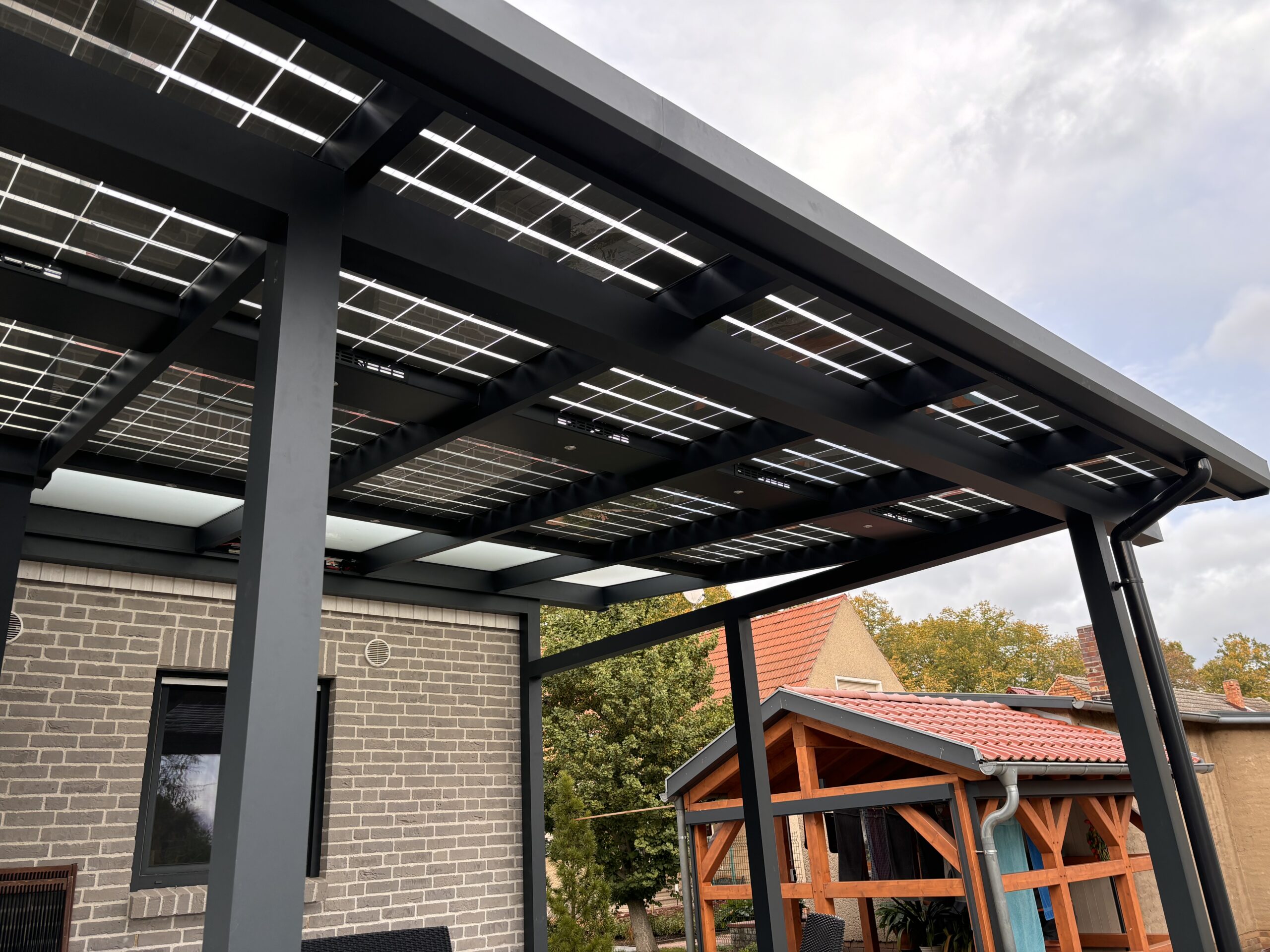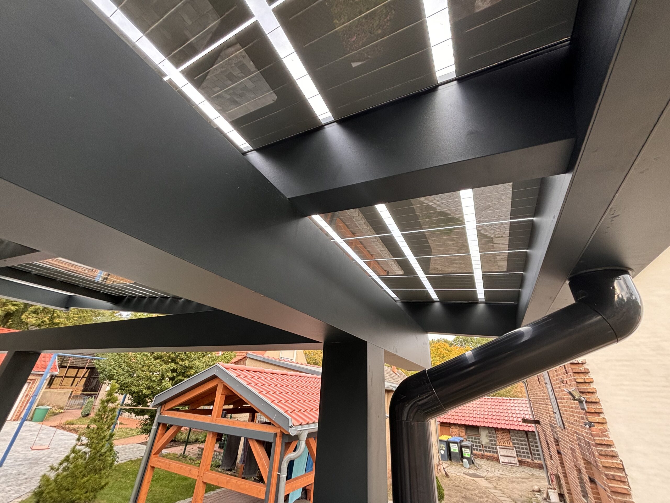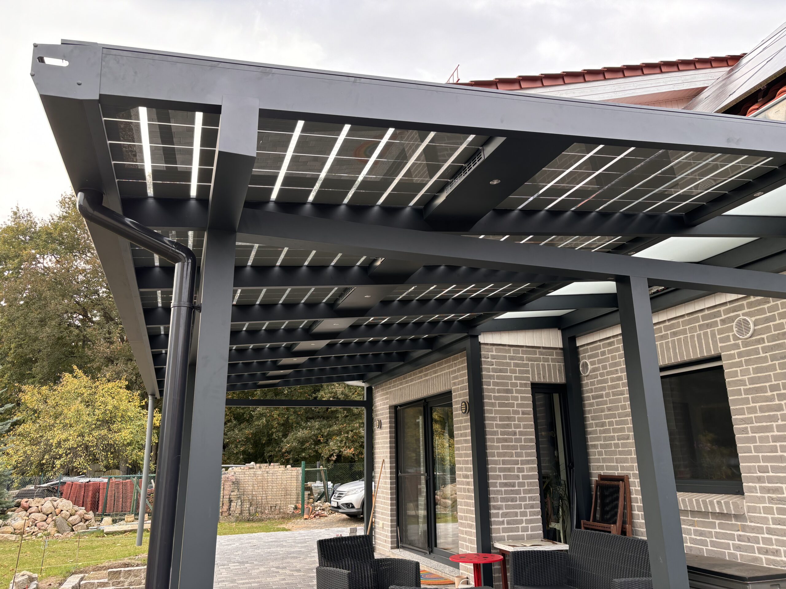 Verbinden Sie Energieeinsparung mit Ästhetik. Unsere Lösung bietet ein modernes Photovoltaiksystem, integriert in eine elegante Aluminiumkonstruktion. Reduzieren Sie die Abhängigkeit von Lieferanten, senken Sie Kosten und genießen Sie ein klares Design ohne Kompromisse.