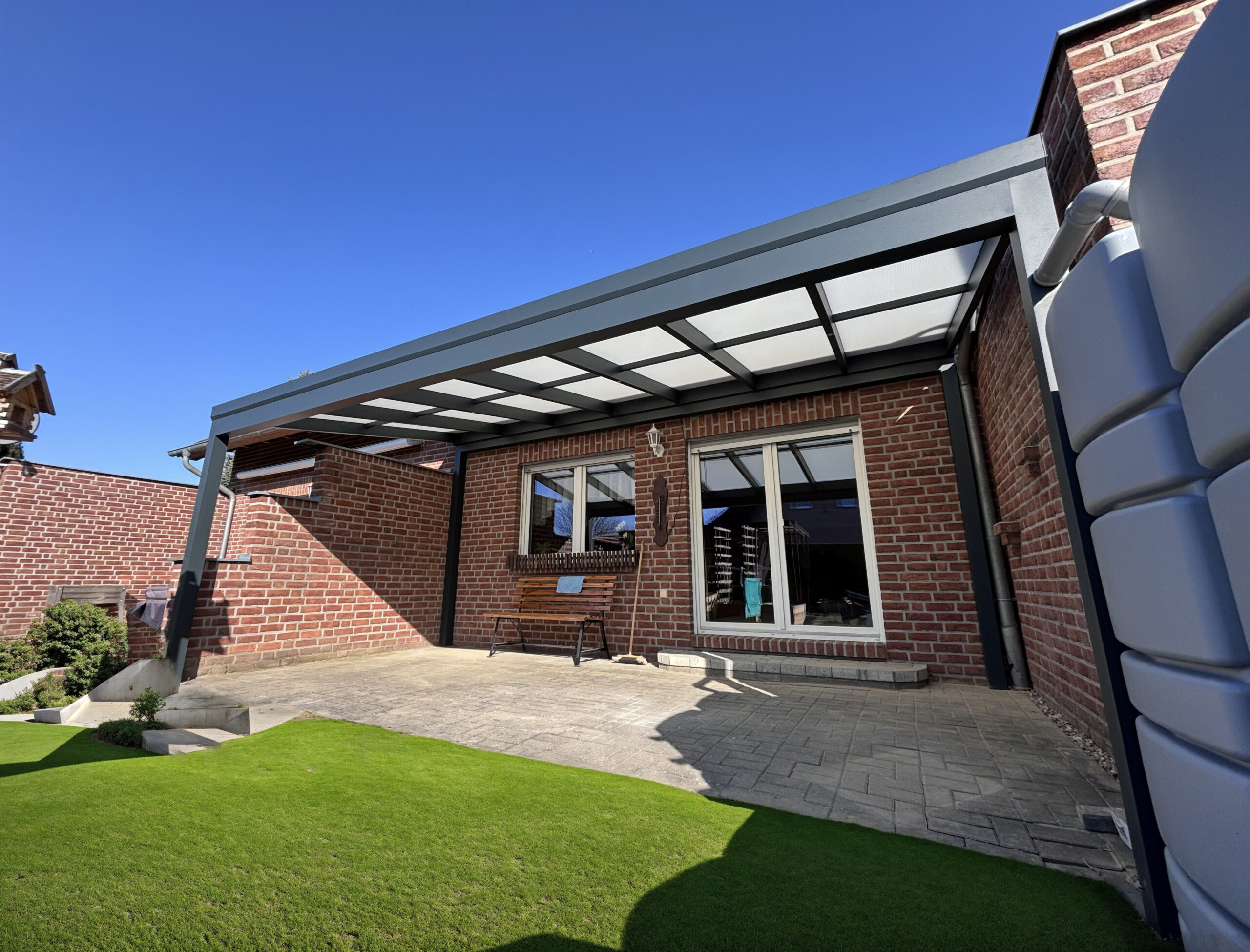 Unsere Terrassenüberdachungen ermöglichen bei Ausstattung mit Photovoltaikmodulen die Nutzung erneuerbarer Energiequellen, was zur Nachhaltigkeit beiträgt und Ihren CO2-Fußabdruck reduziert.